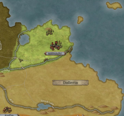 Dalleria umfasst das nordöstliche Viertel des Kontinents Andarill. Die Hauptstadt und einzige größere Stadt von Dalleria ist Midnight. Ansonsten ist Dalleria weitestgehend ländlich geprägt.