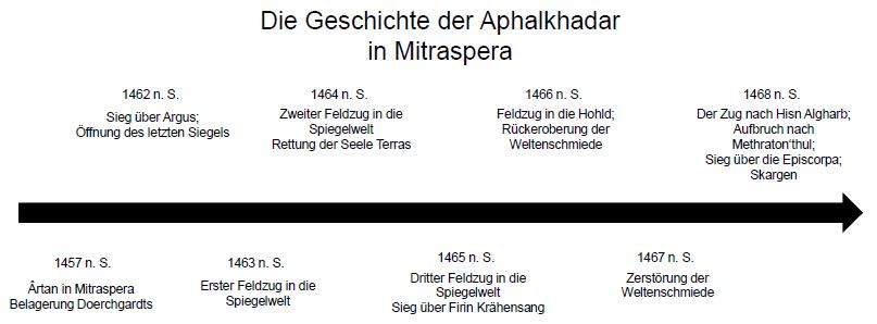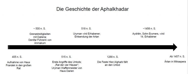 Historiker definieren die Neuzeit der Aphalkhadar mit der Entsendung der Ârtan über die Grenzen Andarills hinaus. Immer verzweifelter werden die Bemühungen zur Bekämpfung des Untots, sodass 1457 n. S. der Erhabene Aîdryen nach Mitraspera aufbricht.