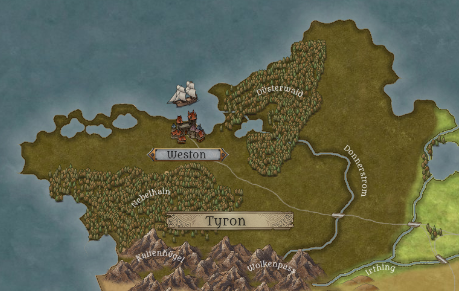 Tyron umfasst das nordwestlichen Viertel des Kontinents Andarill. Die Hauptstadt von Tyron heißt Weston.